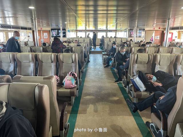 船不是很大,分上下两层,如果风特别大的话会停航,我们去的前一天就停航了,今天运气还不错,上午没有雨只是有点阴天。