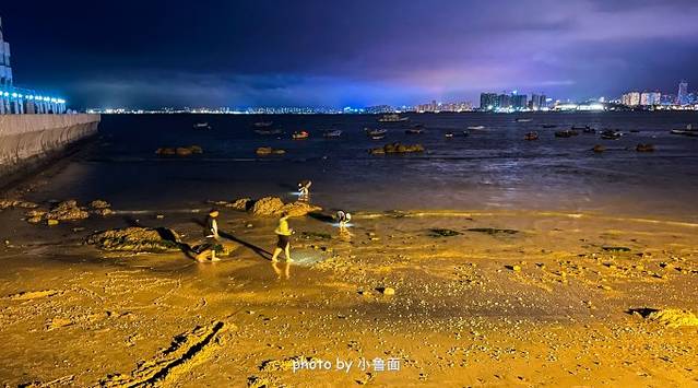 晚 上海 边有很多人在抓小螃蟹贝壳之类的。