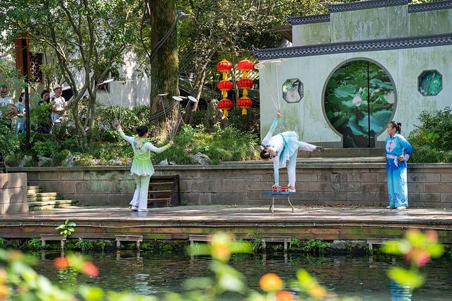 南浔古镇也增添了新的变化,国庆节的演出轮番上演,杂技、水晶晶歌谣、水晶晶花穿、醉意江南,在不同的地方上演着不同的精彩。