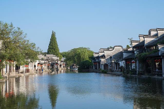小桥、流水、古街、民居,在这蓝天白云的映衬下无比的梦幻