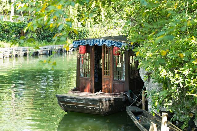 小莲庄又称“刘园”,是清代南浔富商刘镛的私家花园,也是南浔古镇的王牌景点。刘家三代人花了40多年建成小莲庄,格局庄严有度,精巧的园林设计不乏曲径通幽之美。夏天来此赏荷,碧叶红花映衬着池边亭台,分外好看。