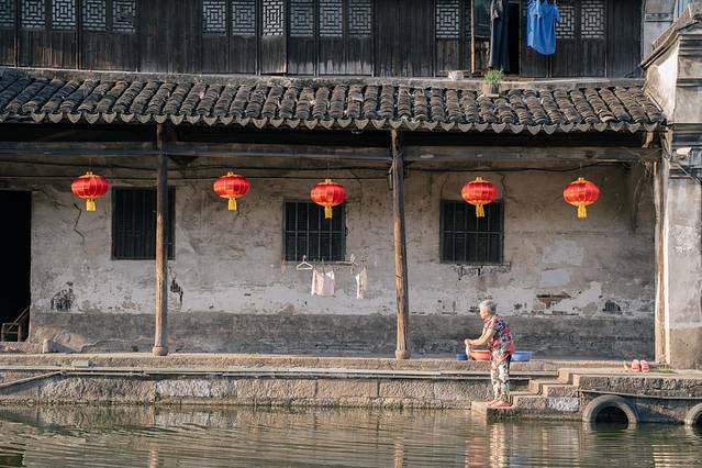 百间楼,南浔古镇河面最开阔的一段,也是我们最为钟爱的江南水乡的模样。由于这里已经是古镇的边缘地带,所以来这里的游客并不多,你在这里最常见的便是生活在这里的当地人,他们以水为伴,靠水而生。