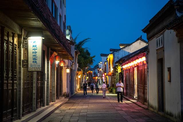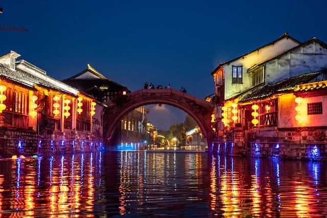 当夜色降临,南浔古镇河道两旁的灯纷纷亮了起来,因为临河的缘故,夜晚的风都带着些微凉。晚上的南浔,热闹了许多,人来人往的游客不断地穿行在古镇中。踱步在古镇的石桥上,望着这斑斓的水乡夜景不禁停下来脚步驻足观赏。