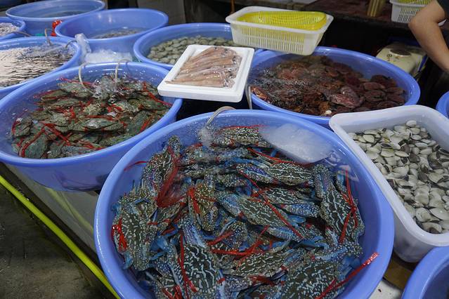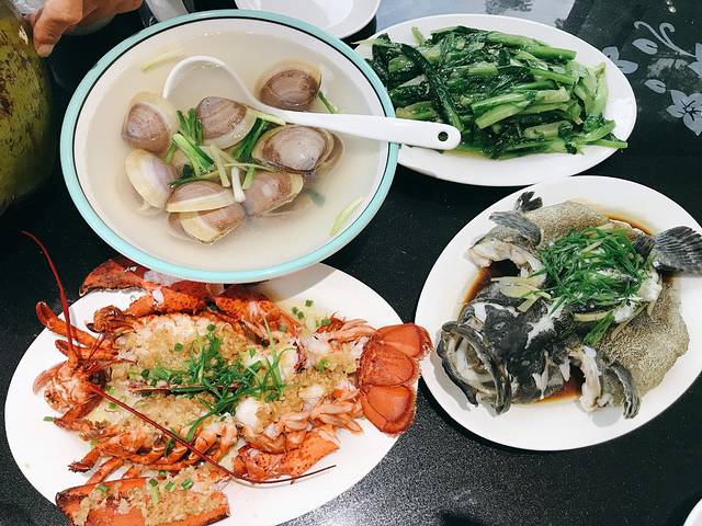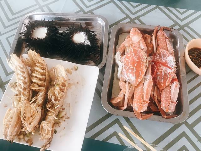 由于前两天台风,不让出海,皮皮虾居然卖到了80元一斤,我们买了点别的龙虾,石斑鱼,贝壳这种回来,中午的店不好吃,决定换一家,门口巴巴贝尔那个女主人,烧菜的钱都要100多了,太贵了,换到了停车场左边这家,一个小伙子老板,给我们烧海鲜。