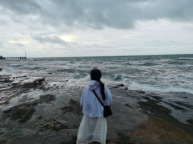 按照小红书攻略到了五彩滩边上一条小路,有个私人观景台,是真的好,比五彩滩的看日出视角更好,没有遮挡。但是今天没有日出,阴云密布。