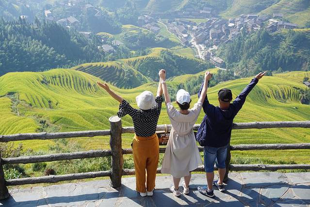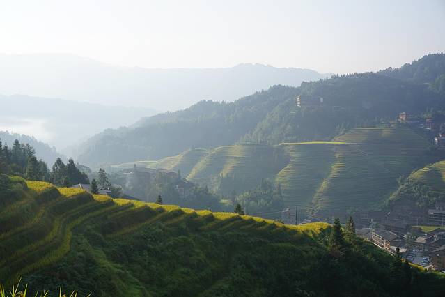 本来是打算下午出发,3点多到酒店,再去个寨子景点,把龙脊梯田景区玩掉一半,但是高速2小时山路不好开2小时,到民宿都5点多了。想去金佛顶,但夕阳都没了。其实如果规划的好,可以先去古壮寨或者平安寨,再到最远的金坑大寨,这样比较顺路。不过我们自由行,就往后推了半天,平安寨和金佛顶第二天去,就阳朔来不及去漓江杨堤了。