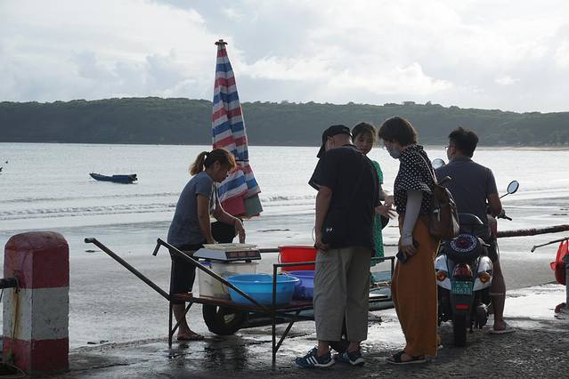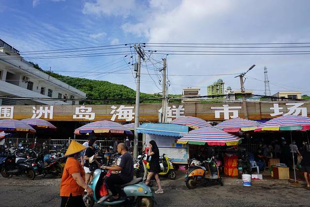 算了下我们明天就要回去,所以今天想去南湾海鲜市场买点海鲜吃,租电瓶车的小哥哥说从南湾到五彩滩,不要走导航的路,要走边上小路。于是我们顺利的错过了去南湾正确的路,开上了去五彩滩的路,直到要从中间走近道去南湾海鲜市场,才发现小哥哥要我们避开的就是这条,我看了下那陡峭程度,很保守的决定绕路走。终于绕了一个大圈,我们在下午4点半到了海鲜市场。