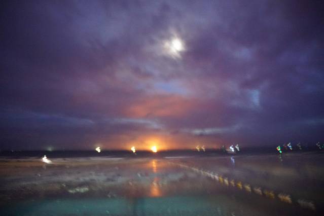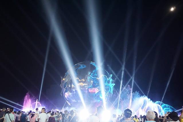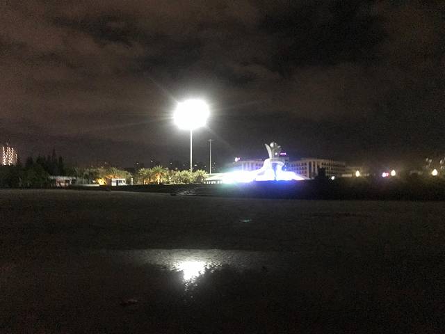 再打车去银滩,又是晚上,两次都没有看到白天的银滩,但是却偶遇了国庆提前开的喷泉演出,还挺好看。国庆气氛浓了,人多了,堵车堵得一塌糊涂。