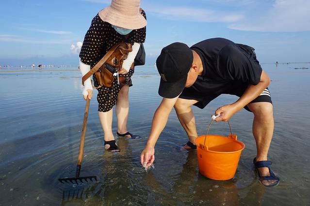 那些攻略说能刨到沙虫,螃蟹,还有皮皮虾啥的,我们啥也没有只有蛤蜊