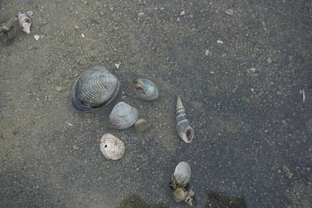 不走大路,依旧走小路,教堂后边小路没多久就到了贝壳沙滩,涨潮时其实也没啥新鲜贝壳,我爸在这里开始他捡贝壳的第一站