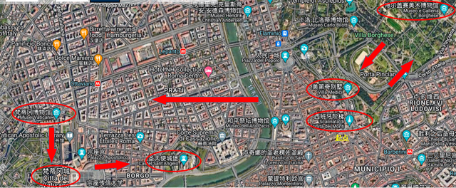 不逛台伯河,从圣天使城堡向北步行20分钟返回A线Lepanto站;继续逛的沿河向北,再向东步行30分钟是西班牙广场,向南20分钟是纳沃纳广场,三条路都餐馆众多,点评网站搜索选择。