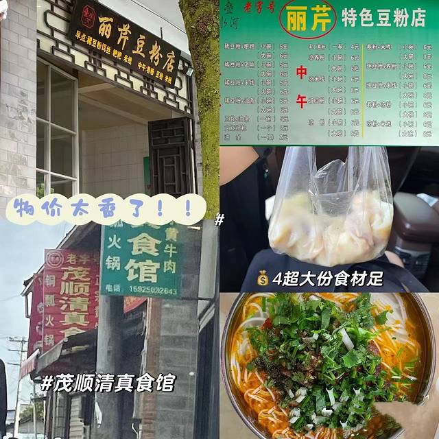 4.丽芹豆粉店: 也是客栈老板路上买给我们吃的,据说开了很多年了,💰4一条,对比在古镇里吃过的,确实这家更好吃哈哈,里面的料多点分量还挺大的香。