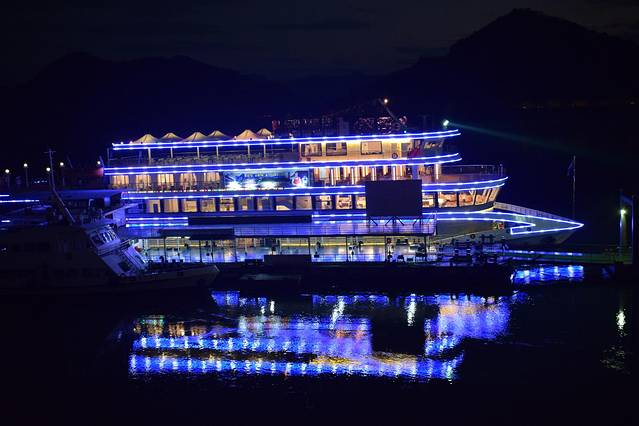 江面上张灯结彩的游轮静静的等待游客的光临。