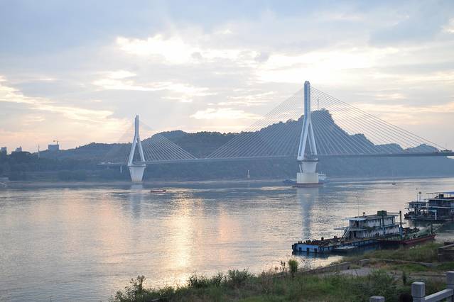 夕阳下的夷陵长江大桥。