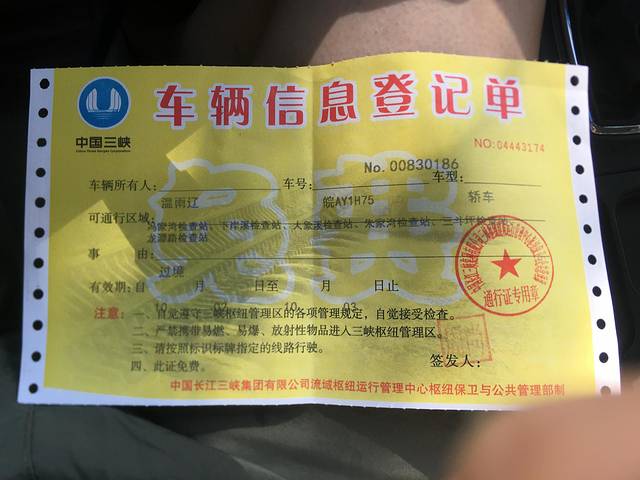 这就是三峡大坝专用道路通行证,名字都给我打错字了。
