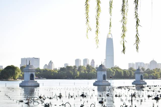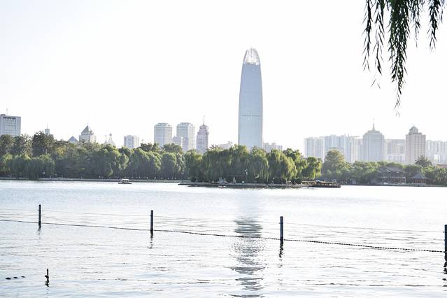 跟四年前国庆节的百舸争流相比,今天的大明湖面明显平静寂寥许多。