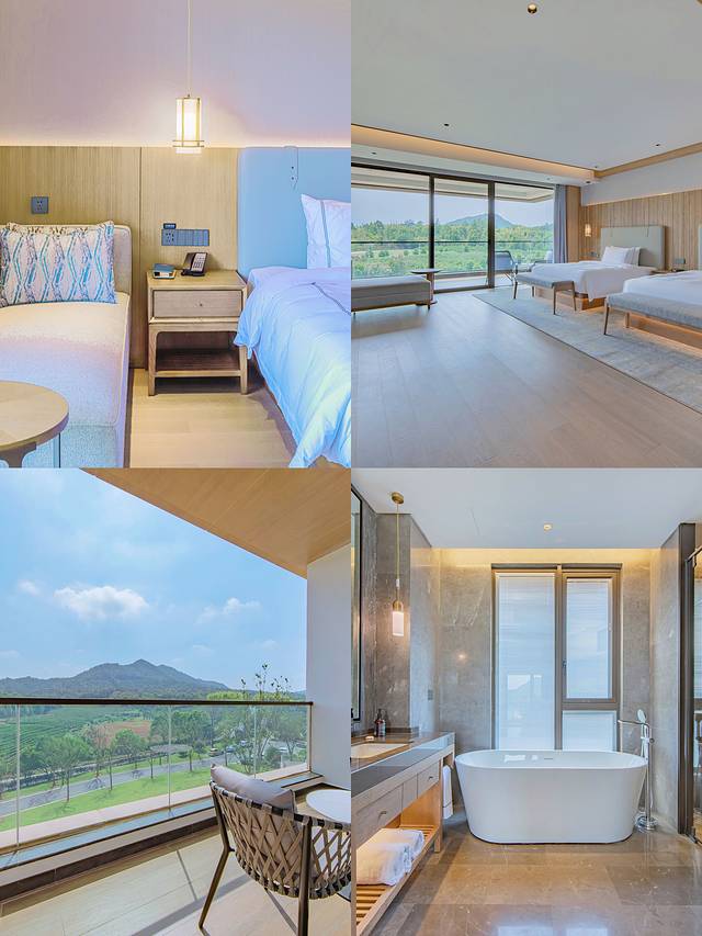 🔹酒香不怕巷子深,酒店被茶山竹林🎍环伺,远离城市喧嚣,独享二人世界的静谧与浪漫💞清晨按一下开关窗帘自动打开,迎接第一抹秋日暖阳🌅暮色落下,坐在露台/阳台,共享落日余晖🌄