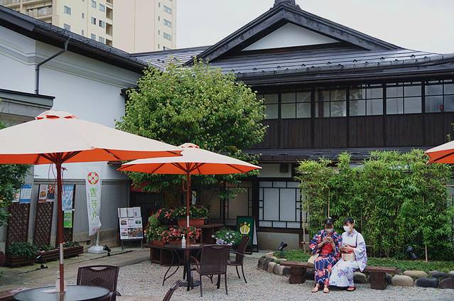 在山形MARUGOTO馆红之藏里的荞麦面专门店,也可以吃到芋煮啊,山形牛肉什么的。来这里一是靠近花笠节会场,再主要是想拍拍照,毕竟它曾经是红花商人的仓库建筑,古香古色很有韵味。
