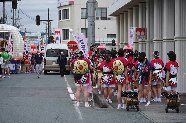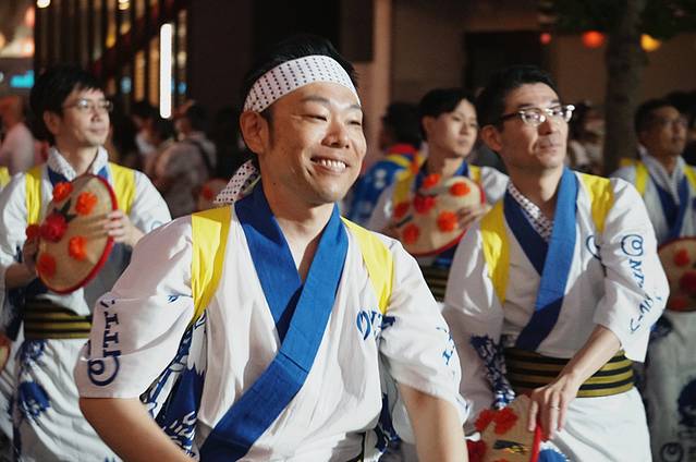 花笠舞顾名思义就是手持山形特色的“花笠”边游行边舞。舞蹈形式、花笠样式和服装的设计上,每个方队(大多是山形的一些公司、社会组织)都有自己的特色,也是这个节日的一大看点。