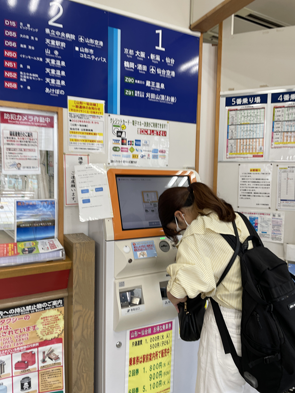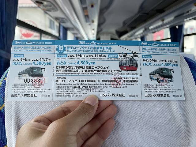 售票员看我们楞在自动售票机旁边,就唤我们去了人工窗口,很耐心的推荐了“巴士票+藏王缆车票”的套票,这服务要竖大拇指了。