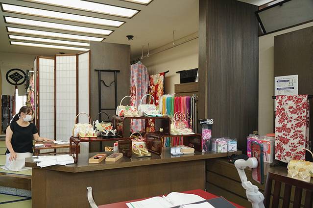 这家店可以提供浴衣、和服的租赁穿着服务,也有一些高级的布料,可以订制和服。