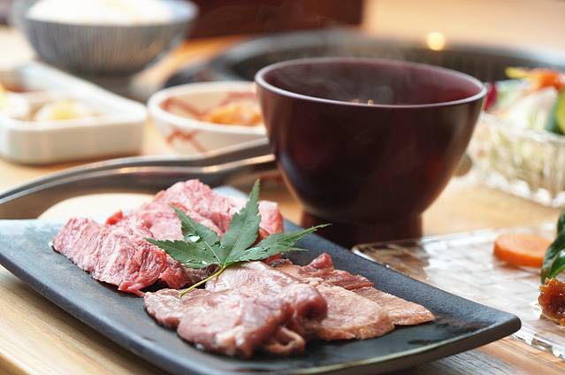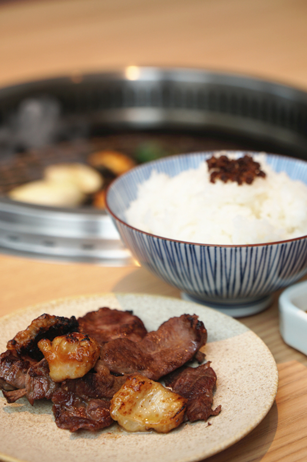 午餐有3300日元的烤肉套餐。包含五花、牛舌、牛肠、米诺(牛的第一胃),还有色拉、米饭、味噌汤、泡菜、甜品和一杯饮料(可选)。怎么说呢,想放开肚子吃肉肯定不够,但是作为午饭是很完美的。