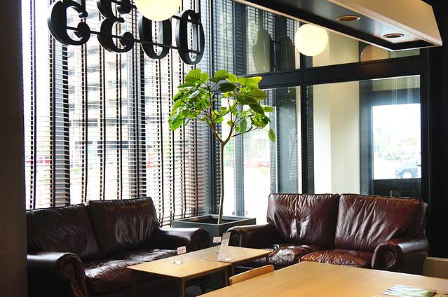 落地窗旁有一些座位,有人在这里办公。卖场整洁时尚富于格调,一看就是年轻人会喜欢来的地方。