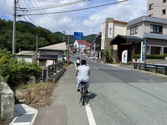 下来巴士就可以看到藏王山麓站了,从这里可以乘坐缆车,也可以去藏王温泉街逛一逛。温泉街还是比较大的,如果有日本的APP系统和支付方式,可以租借这种共享单车。一个小时300日元。