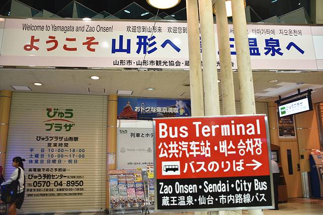 在山形站内就贴满了指示牌,写着“藏王方向”,只要会看汉字基本都找得到巴士站。