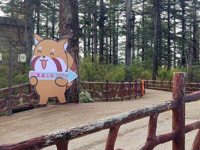 从游步道返回,在象尔山庄这里有两条返回古佛坪索道上站的路。这是来是走的平坦的电瓶车路,这里标示了到索道上站约有3300米远。