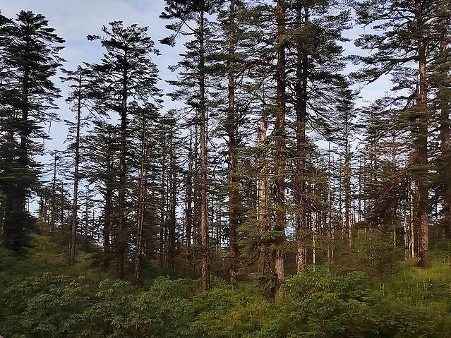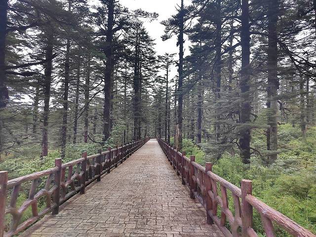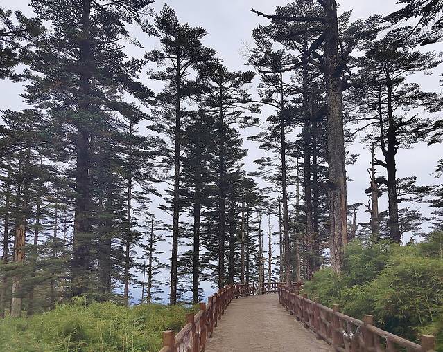 景区在电瓶车道上开辟了“冷杉云道”,从冷杉云道的起点出发,是个环状的,实际上,冷杉云道也是根据山形的变化曲折通行的。