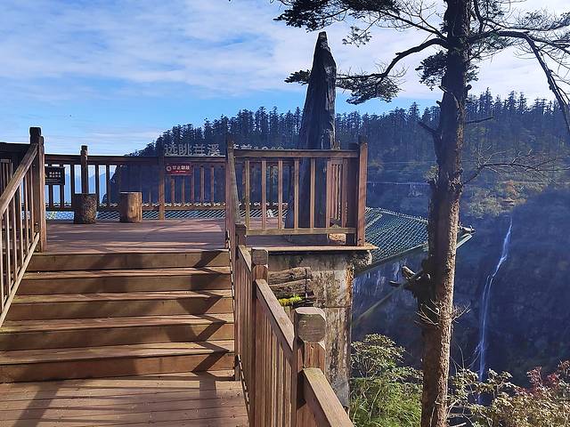 观景台几个台阶上去,看到右边那柱细长的瀑布没有?
