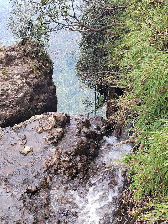 终于来到一个叫“鸯溪”的地方,它和另一侧的“鸳溪”都是“鸳鸯池”水流出的,到这里的岩边都形成了瀑布。