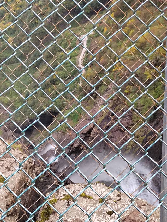 在周边没有找到可以合适观察瀑布全景的地方,只能在这里透过金属网罩观看垂直落下的瀑布。