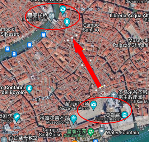 威尼斯的精髓贯穿于大运河,坐船游览必然是首选,沿途打卡三大桥斯卡尔齐桥、里亚托桥、戴尔学院桥。建议从北向南坐,在圣马可广场下船。