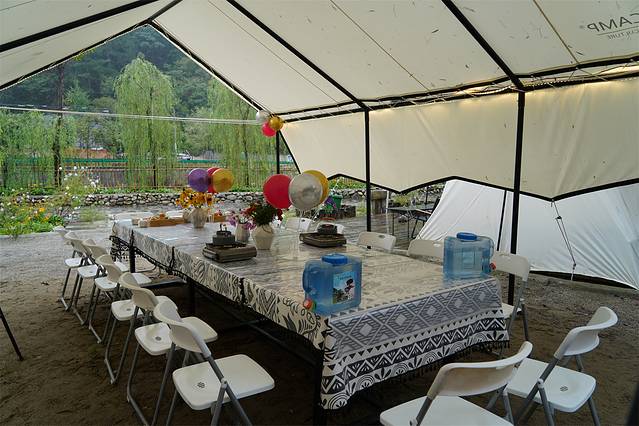 帐篷、天幕、餐桌、椅子也是一应俱全。