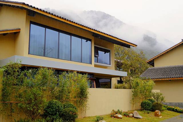 携程度假农庄(留坝秦岭1号联营店)背依秦岭,由十个独立的院落和一个宽敞的接待大厅组成。