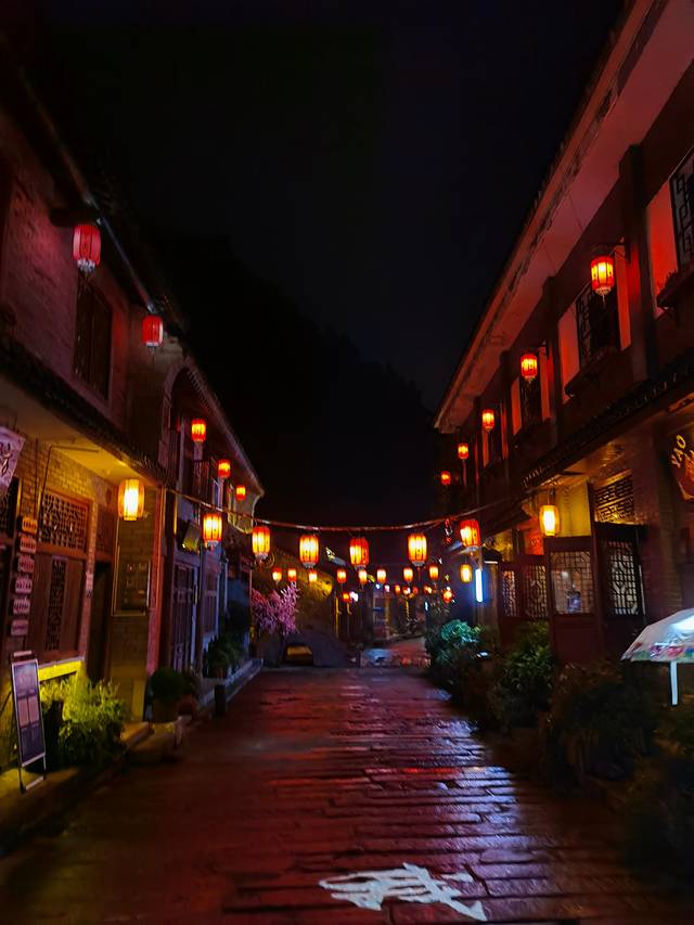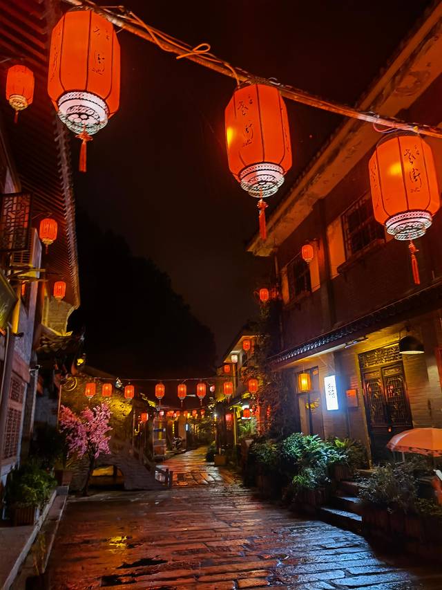 摇曳的红灯笼照亮古朴老街的青石板路。