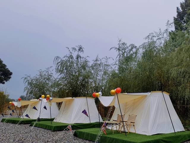 嗨King野奢营地依山傍水、溪流环绕,环境绝佳。