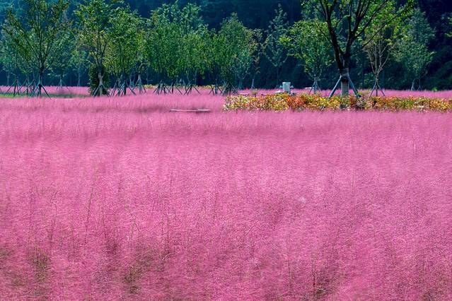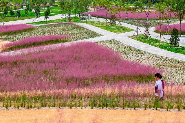 陕川郡黄江边的新邵阳公园秋天粉黛乱子草将这里渲染成一个粉红色的世界,粉红色的海洋里一定会带给一个美美的回忆。