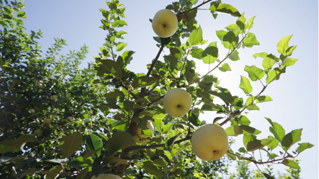 清晨,走进果林,采摘新鲜晶莹的苹果,让清晨第一缕苹果的甘甜唤醒你沉睡的味蕾。