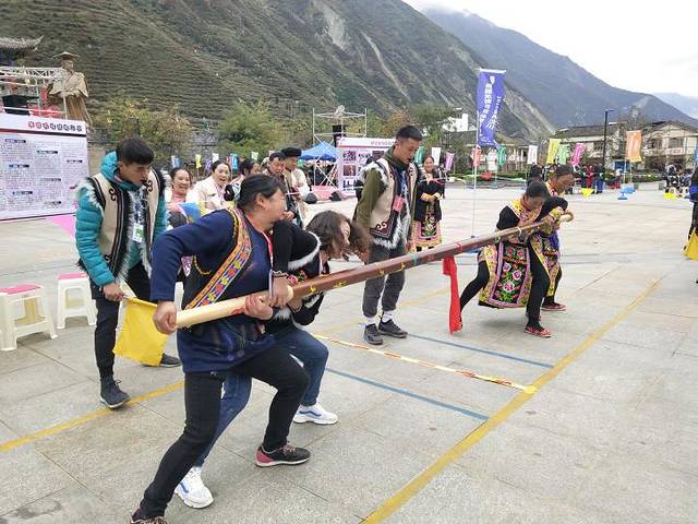 推杆源于羌族尚武传统和武士间比武较量,是羌族地区最为普遍的一项体育活动。比赛时,围观者以呐喊声为之助阵,使比赛显得紧张热烈,现已发展为羌族全民体育活动。