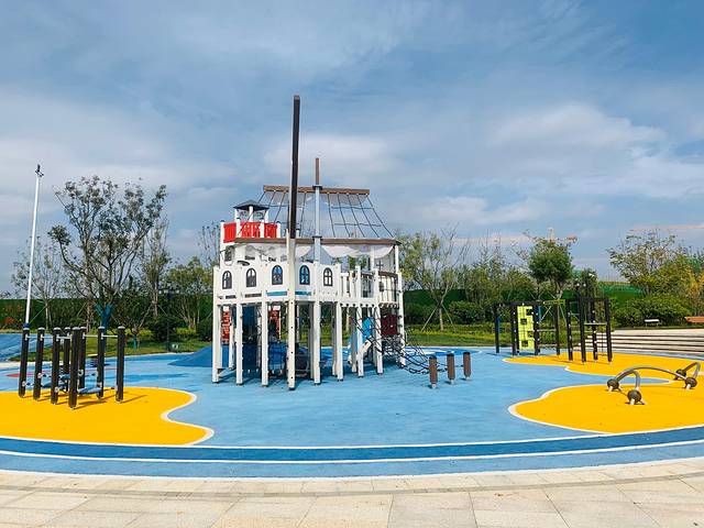 除了美景,鲁能胜地内还有好多免费的游乐设施,海盗船、充气城堡、大滑梯,孩子玩得不亦乐乎。最让我惊讶的是项目里居然还有阿基米德取水器装置、陶艺手工,寓教于乐,让孩子在玩耍中增长知识,这可比我在家捧着书本给她讲解道理通俗易懂的多,点赞!