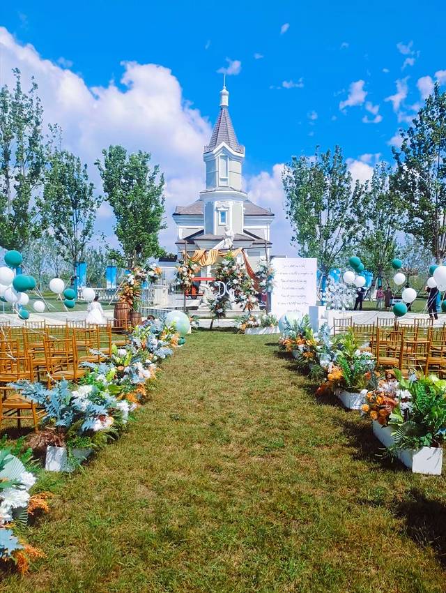 如此美景,吸引了好多拍婚纱照的情侣以及拍照达人来取景打卡,我们游玩当天婚礼礼堂还有新人举办婚礼,蓝天、白云、美景一起见证新人的幸福......