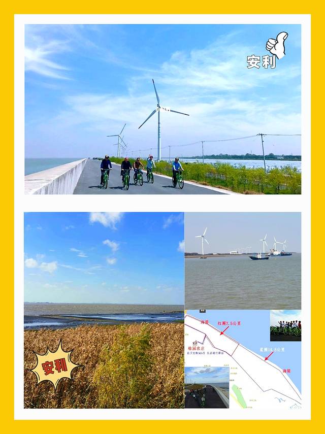 可骑行路线由小圈7.5km-15km自行选择 途中领略长兴岛的美景---沿河堤岸线可以看到风力发电机和稻田,风景优美,打卡长江“no.1”滩、青草沙水库、横沙渔港、长兴岛郊野公园......拍照也非常出片