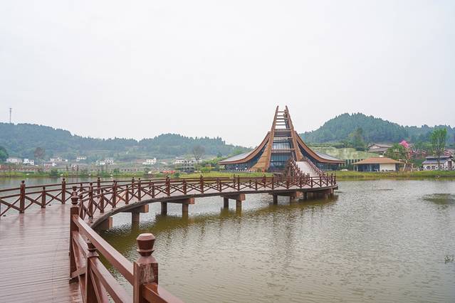 离开卓筒井镇,沿着蜿蜒的公路穿村而过,10多分钟后,就来到了 蓬莱 镇吊脚楼村的绿山微湖。