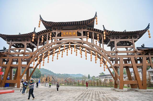我们先去的宋井桃源,从这个大门就能感受到满满的古风,这其实是仿宋建筑。在这里就感受沉浸式宋风体验,里面的小桥流水人家、亭台楼阁、飞檐翘角还有红砖黛瓦,如果不是看到到处拍照的人们,真觉得是穿越回了宋朝,回到那个登峰造极的时代。