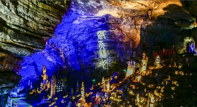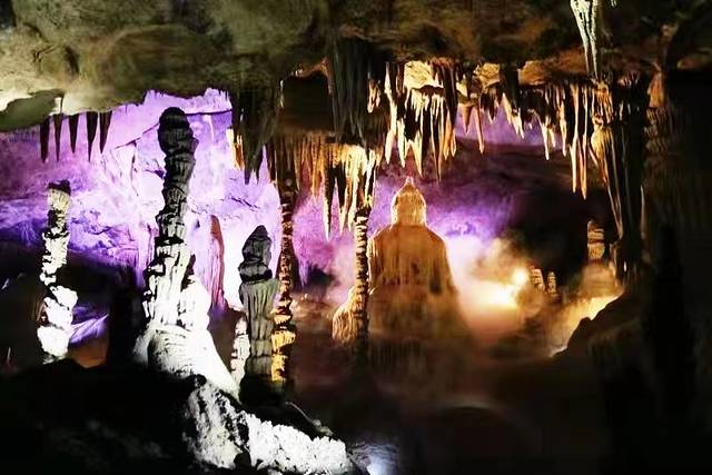 洞壁在五颜六色的灯光映衬下,显得无比神秘与美妙