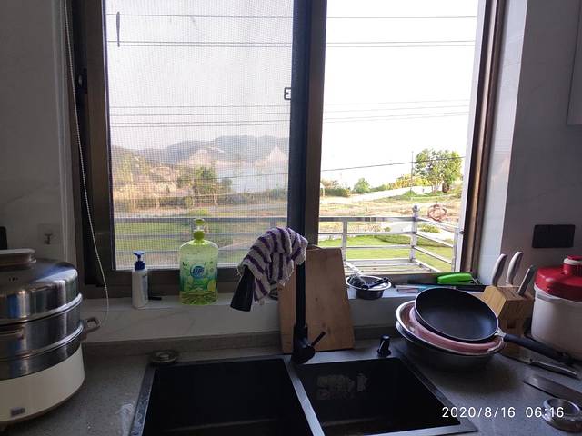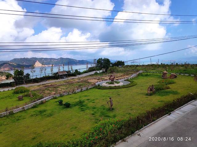 民宿坐落在开元度假村的隔壁,早上从厨房向外望去就是草地和大海。