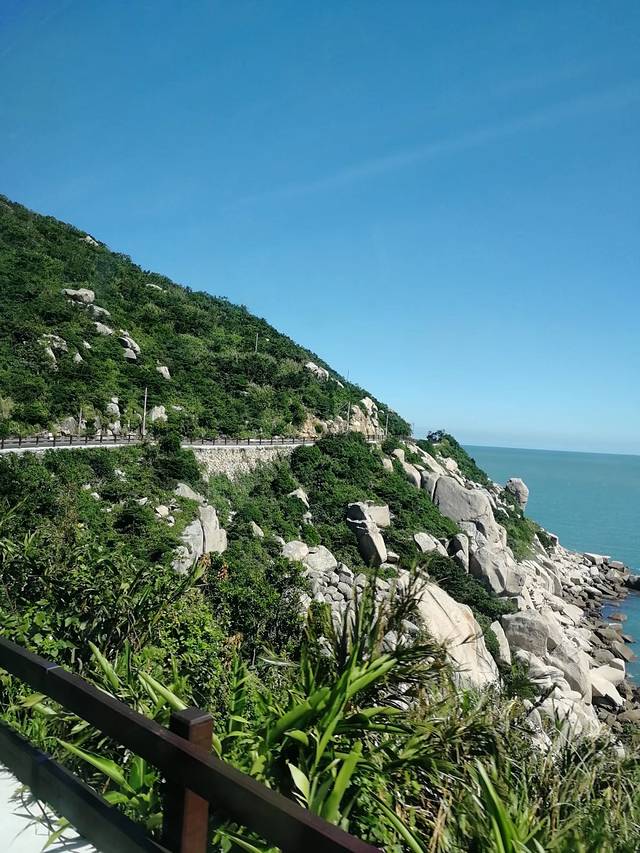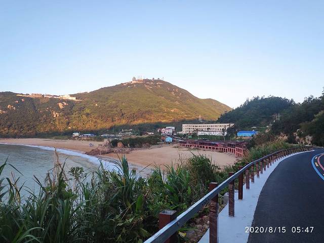 早上起来,阳光还没越过山脊,港湾里只听见海浪声击打着岸边岩石的阵阵声响。大伙儿睡着,海滩上有几个赶海拾贝的游客身影,我沿着柏油马路溜达。